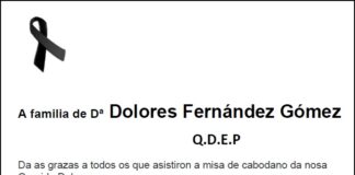 Agradecemento da familia de Dª Dolores Fernández Gómez